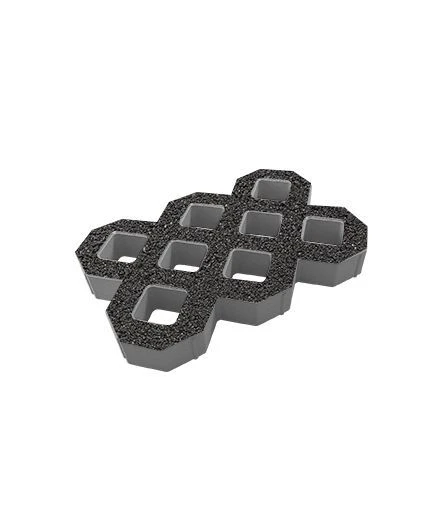 Система модулей с ячеистой структурой. Изготавливается по уникальной технологии методом полусухого вибропрессования из бетона. Модули предохраняют корневую систему растений или газона от механических воздействий. Стенки ячеек берут на себя основную нагрузку – вес пешеходов, автомобилей. Полости ячеек можно заполнять декоративно-насыпным материалом или засеивать газоном.