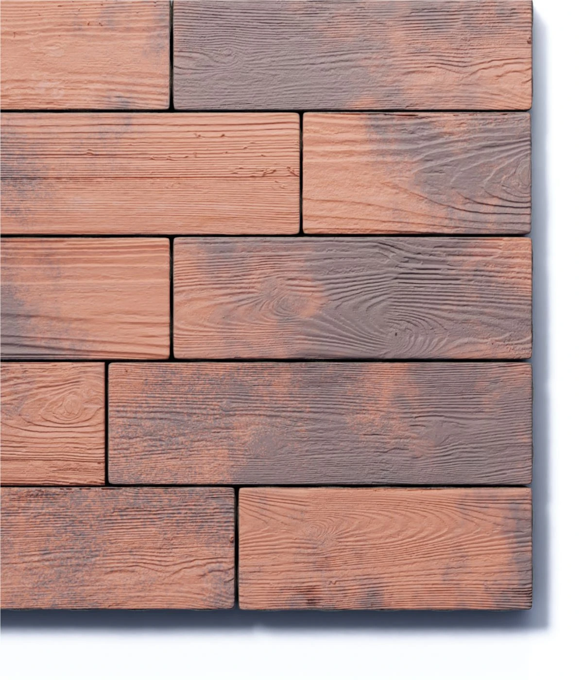 Изготавливается по уникальной технологии методом полусухого вибропрессования из бетона. Поверхность медно-коричневого цвета выполнена с оригинальной фактурой дерева. Идеальна для оформления террас, патио.