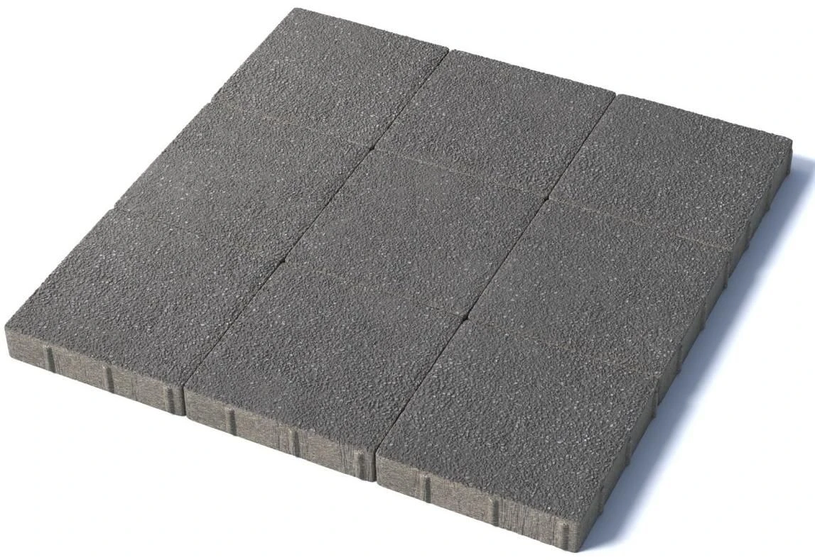 Изготавливается по уникальной технологии методом полусухого вибропрессования из бетона. Поверхность выполнена с оригинальной зернистой фактурой серого цвета. Натуральная Гранитная крошка в лицевом слое изделий наделяет плитку приятной шероховатостью, а также устойчивостью к скольжению. Брусчатка Квадрат 300х300 отличается высокой износостойкостью и практичностью в эксплуатации.