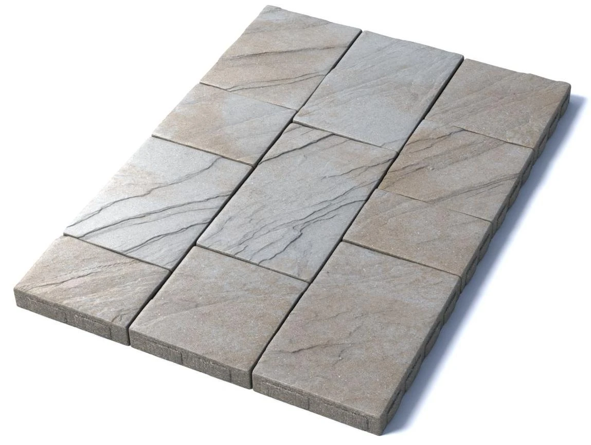 Состоит из 6-и элементов, которые выкладываются в хаотичном порядке рядами. Изготавливается по уникальной технологии методом полусухого вибропрессования из бетона. Брусчатка Литос имеет глубокий рельефный узор на поверхности, имитирующий природную фактуру камня бело-песчанного цвета.