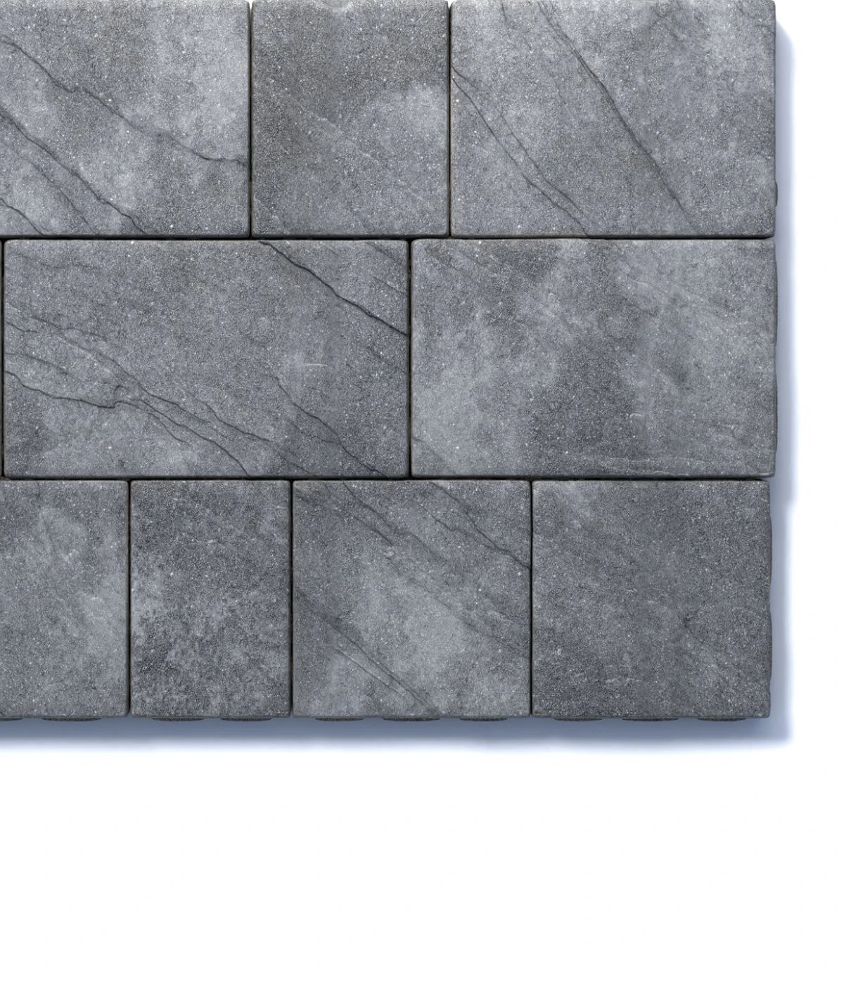 Состоит из 6-и элементов, которые выкладываются в хаотичном порядке рядами. Изготавливается по уникальной технологии методом полусухого вибропрессования из бетона. Брусчатка Литос имеет глубокий рельефный узор на поверхности, имитирующий природную фактуру камня бело-серо-черного цвета.
