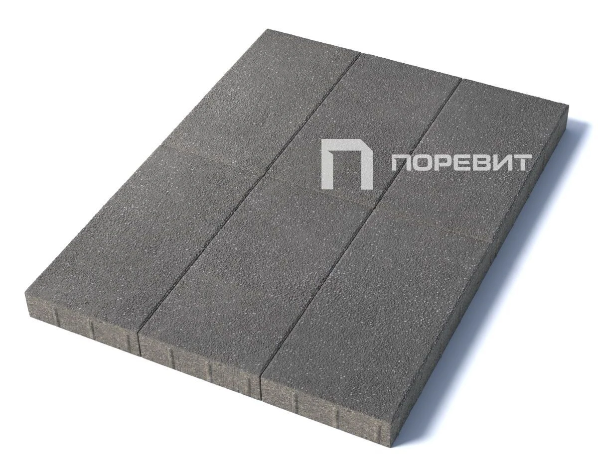 Изготавливается по уникальной технологии методом полусухого вибропрессования из бетона. Поверхность выполнена с оригинальной зернистой фактурой серого цвета. Натуральная Гранитная крошка в лицевом слое изделий наделяет плитку приятной шероховатостью, а также устойчивостью к скольжению. Брусчатка Прямоугольник 600х300 отличается высокой износостойкостью и практичностью в эксплуатации.