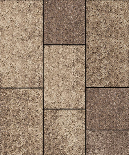 Состоит из 3-х элементов, которые выкладываются в хаотичном порядке рядами. Изготавливается по уникальной технологии методом полусухого вибропрессования из бетона. Поверхность бело-бежево-коричневого цвета.