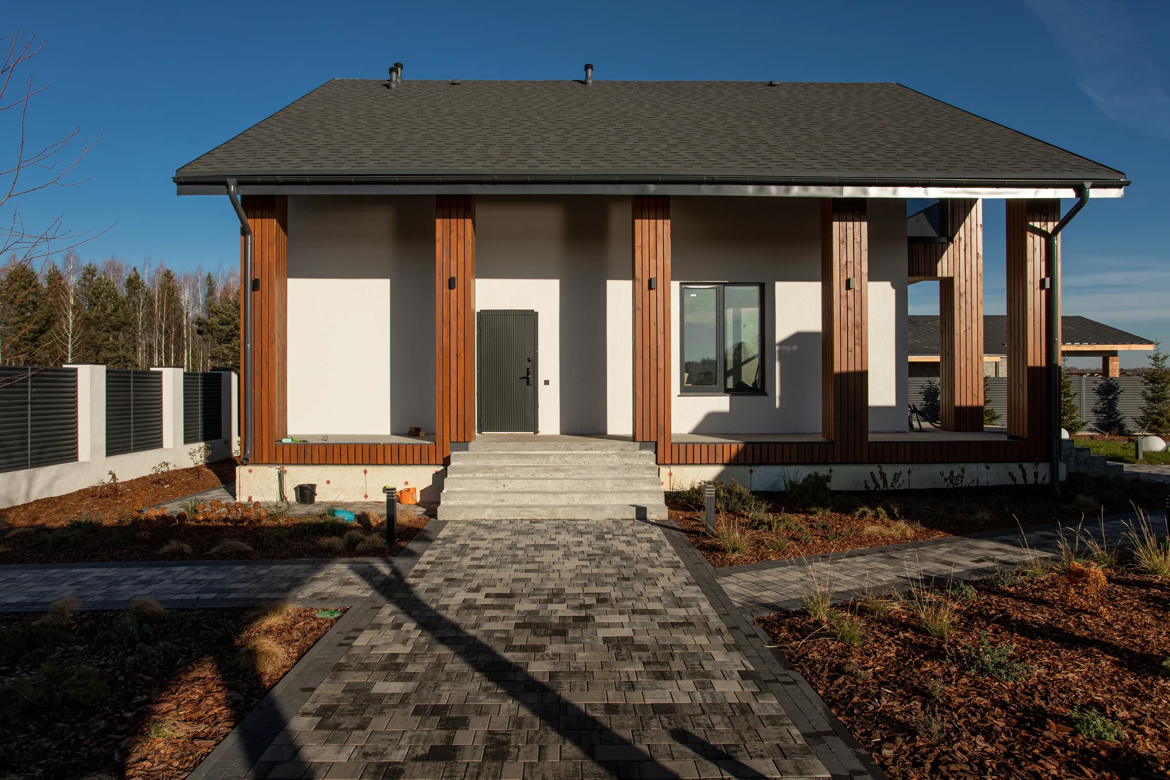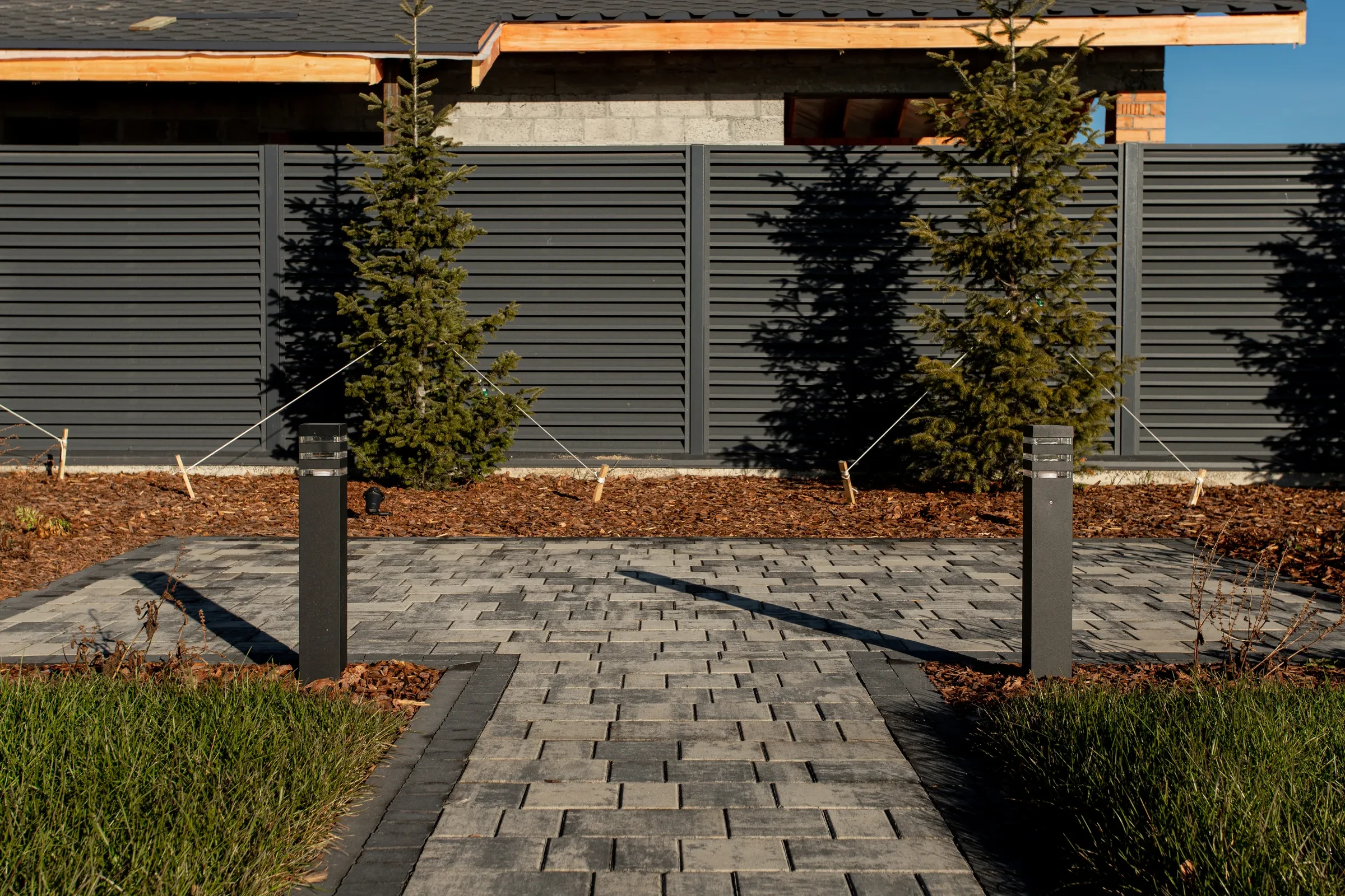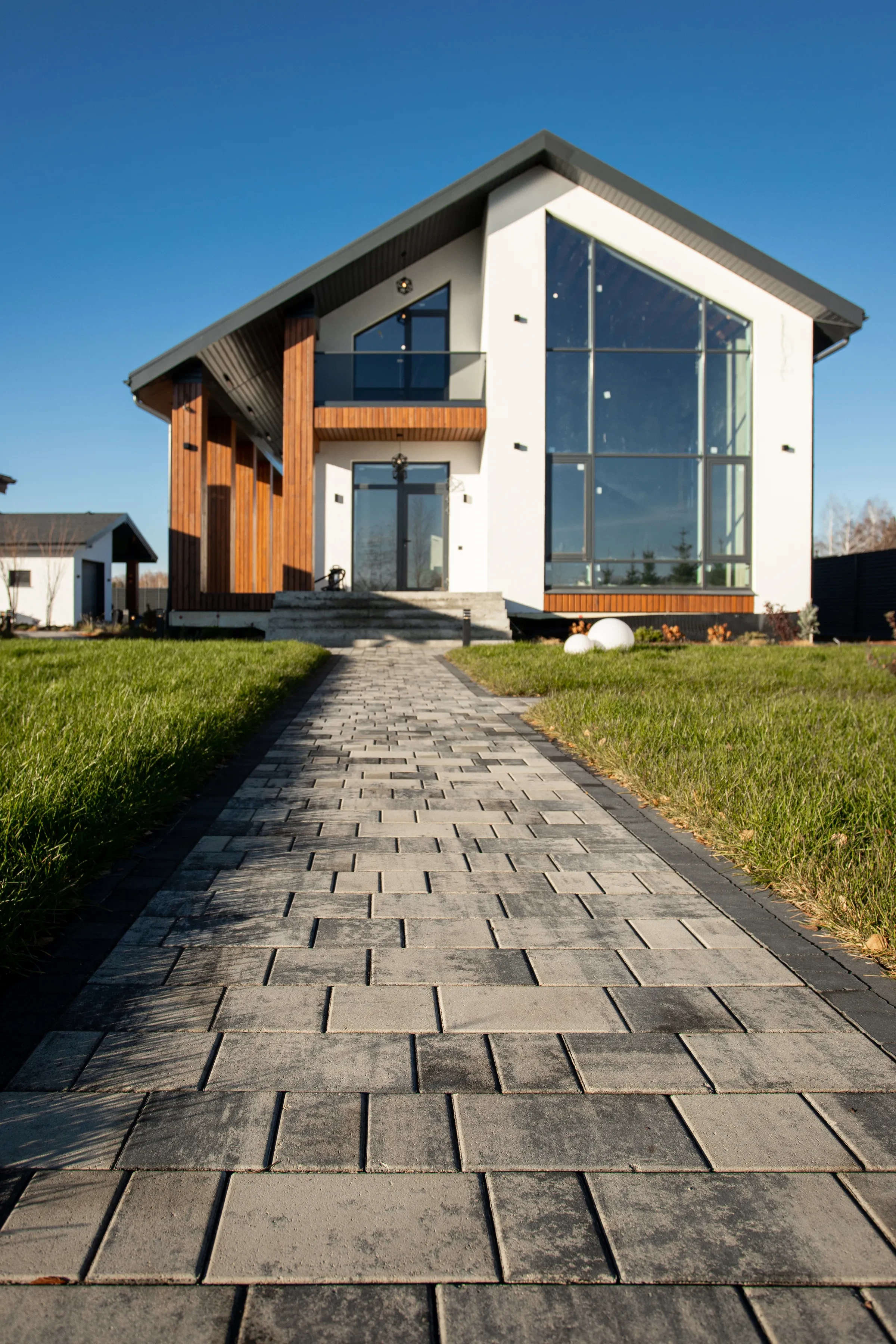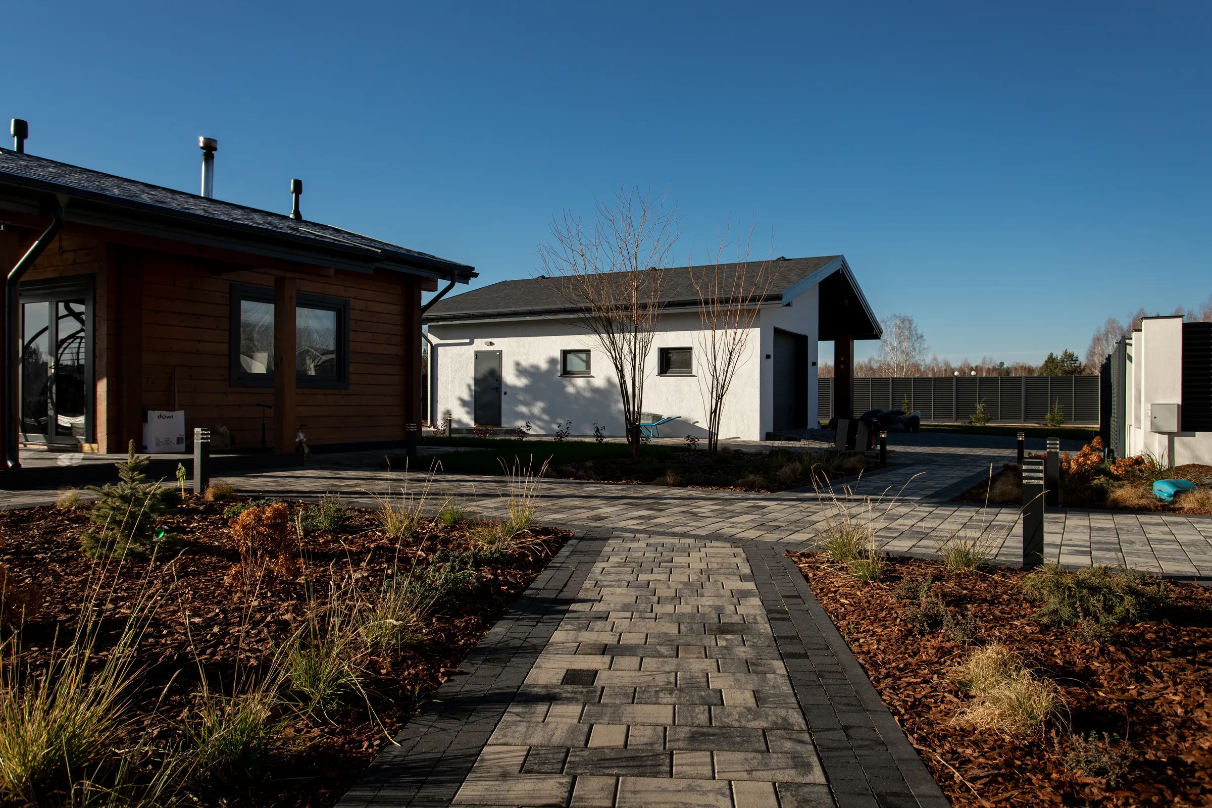 Выполненная работа в Укладка тротуарной плиты на участке с озером - Завод «Поревит»