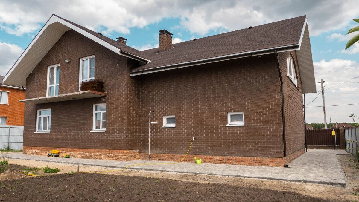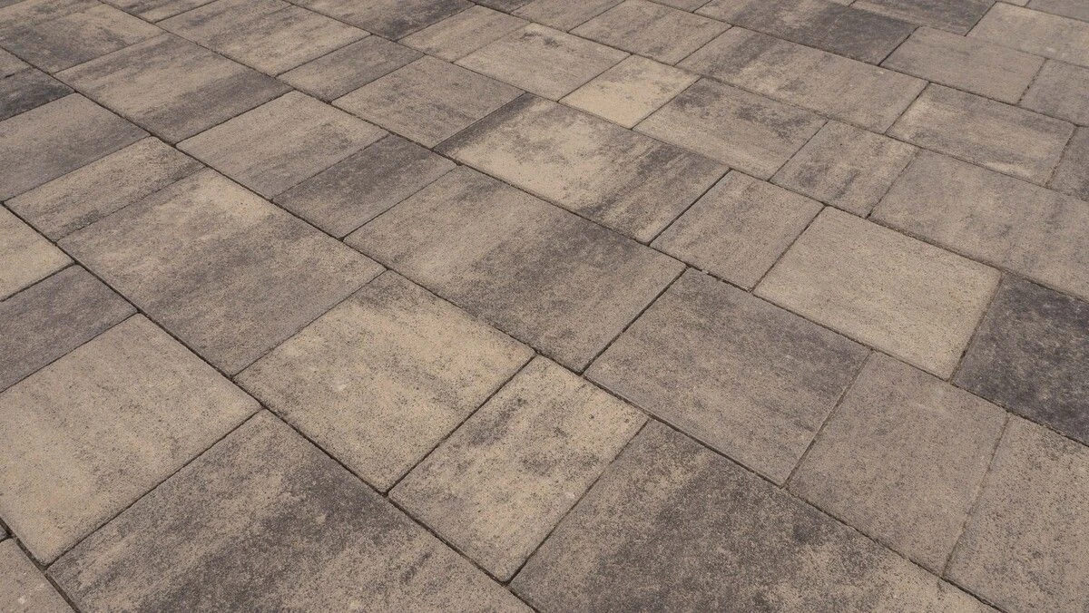 Для мощения отмостки дома, парковочной зоны перед гаражом и около входной зоны, понадобилось более 230 м2 тротуарной плитки формы Старый город в коллекции Гранит Листопад, цвете Антрацит. Данный цвет подразумевает под собой градиентный переход от белого к черному. А форма состоит из комплекта плит разного размера, который комбинируются при укладке между собой вразбежку.