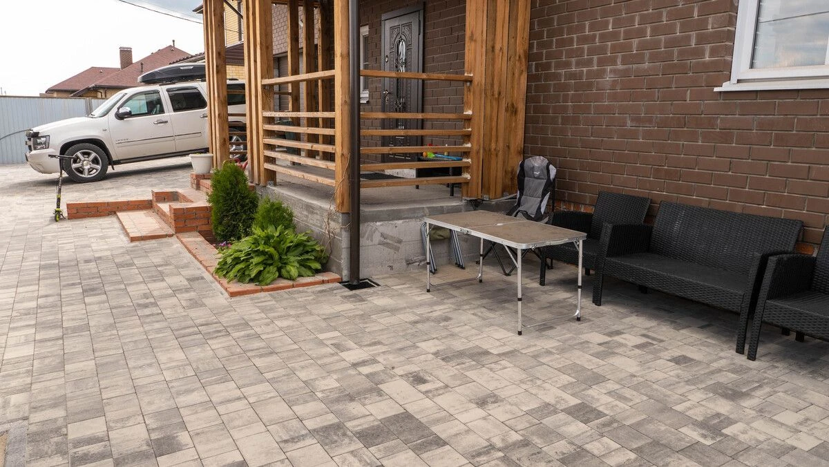 Процесс подготовки основания на данном объекте занял 6 дней, укладка тротуарной плиты — 2 недели.